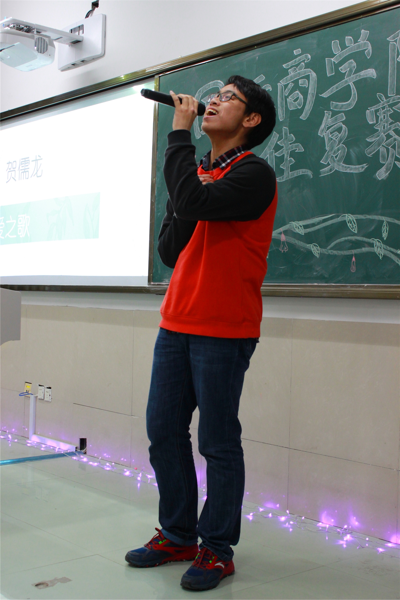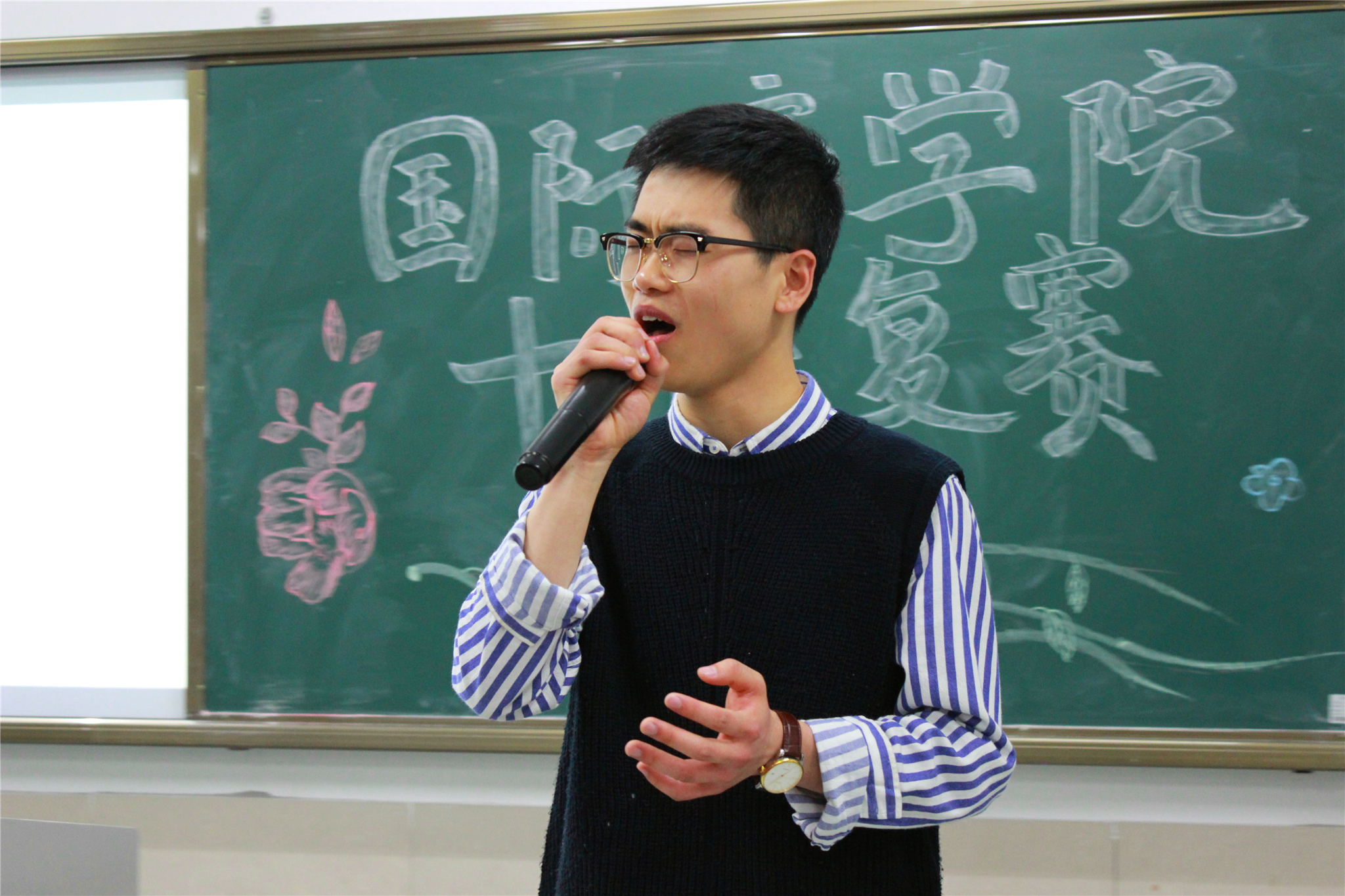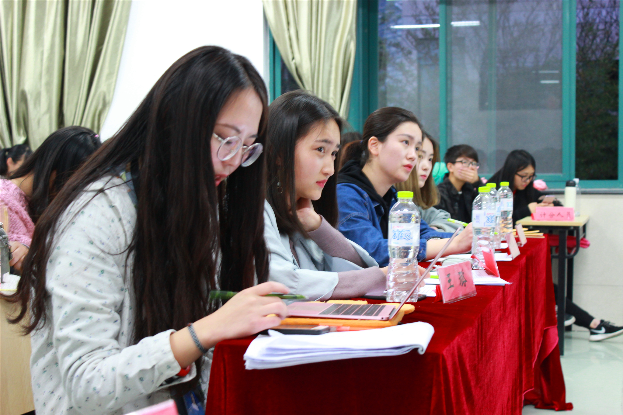 4月13日晚,由院员工会主办的院十佳复赛于望院D205举行。院员工会主席彭于凡,院员工会文艺部部长陈蕾蕾以及洪井一、王璐学姐出席并担任本次比赛的评委。本次复赛将选手分为四组进行演唱,每位选手演唱完后进行大众投票,评委们则在每组选手演唱完毕后进行点评。得分取自四位评委的平均分和大众投票得分之和。