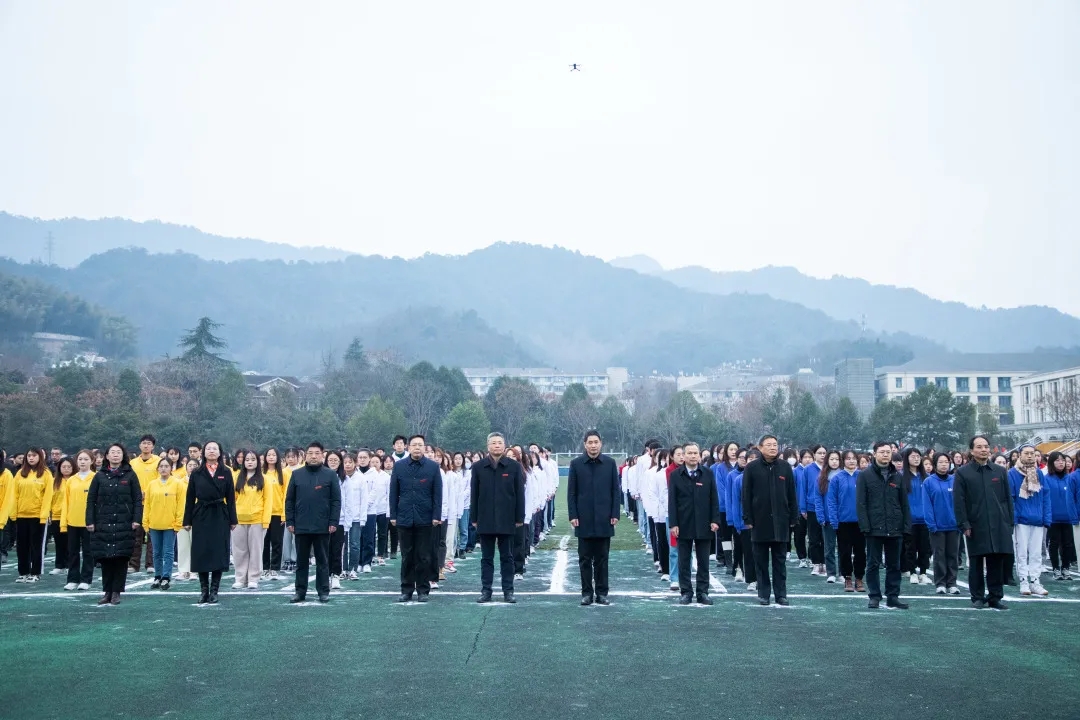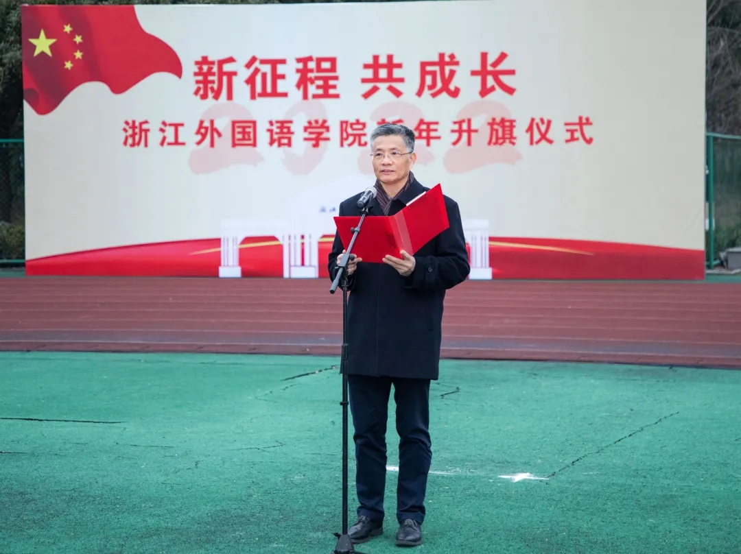 公司党委书记宣勇教授代表公司党委、行政向师生们致以节日的问候和新年的祝福。他表示,在新年的第一天举行升旗仪式是对祖国的衷心献礼,浙外人用满腔的爱国热情和对未来的美好期盼唱响了爱国主义教育新年第一课。浙外人亲历见证了中国共产党成立100周年,举办了庆祝建党百年系列活动,深入开展了党史学习教育,持续掀起学习贯彻党的十九届六中全会高潮,接受了爱党爱国的集中教育,并转化成了事业拼搏的意志豪情。他寄语浙外学子,唯有坚定理想信念、厚植家国情怀,方能不负时代重托、做到强国有我。唯有勤奋进取、吃苦耐劳,方能不负易逝韶华、实现自我价值。