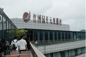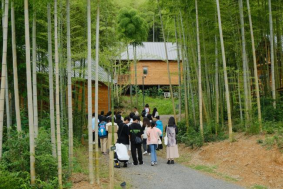 上午,团队首先参观了安吉竹博园开元度假酒店。酒店采用了竹文化概念设计,使得建筑线条简洁流畅,中式与传统经典相结合,风格典雅,极富时代感。酒店设有中、西各式高档餐厅、宴会厅,顶层观景餐厅可以俯瞰整个酒店的景观,绿水青山,尽显大自然的纯净风光。随后,在酒店负责人带领下,同学们参观了相关设施。酒店共有311间客房,一房一景,各有千秋,客房舒适简洁、独立的景观阳台视野极佳。酒店会议厅、健身中心、游泳池等配套设施也一应俱全。