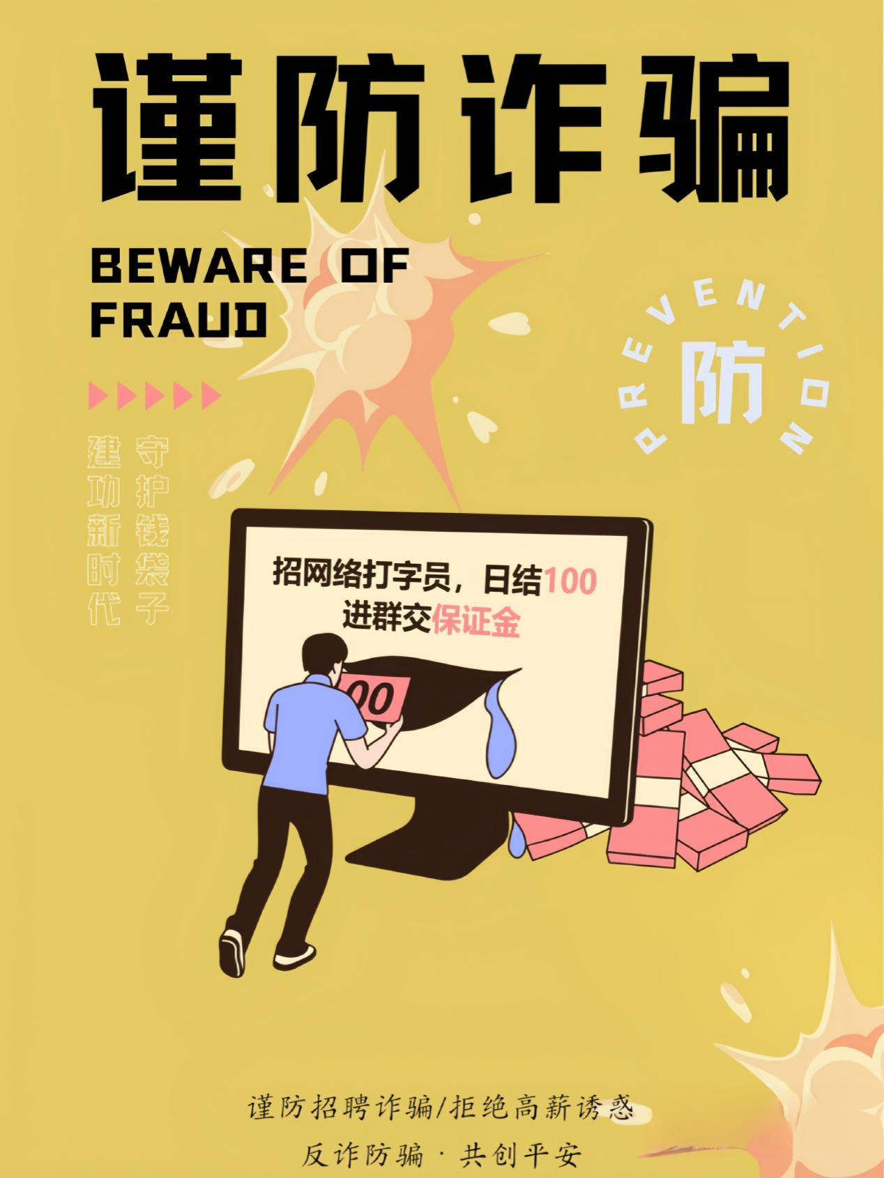 1. 拒交各种名义的押金、保证金以及证件。任何招聘单位,以任何名义向求职者收取抵押金、风险金、报名费、培训费等行为,都属非法行为。
