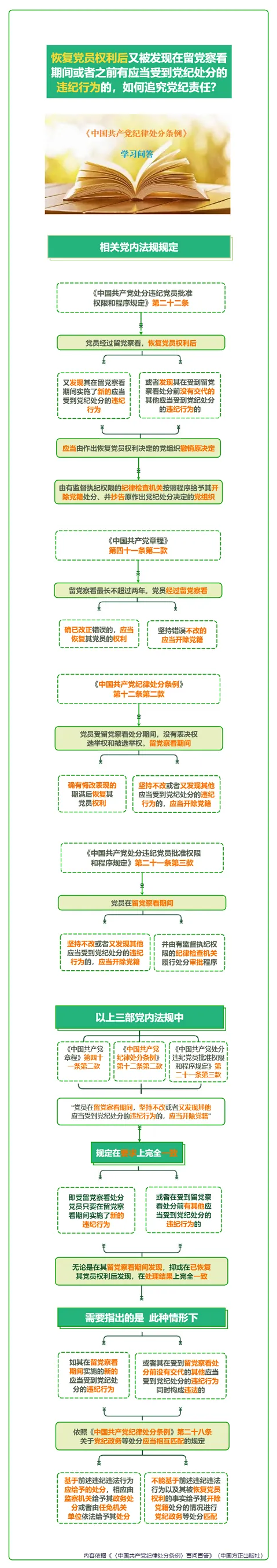 党纪学习教育 | 恢复党员权利后又被发现在留党察看期间或者之前有应当受到党纪处分的违纪行为的,如何追究党纪责任?