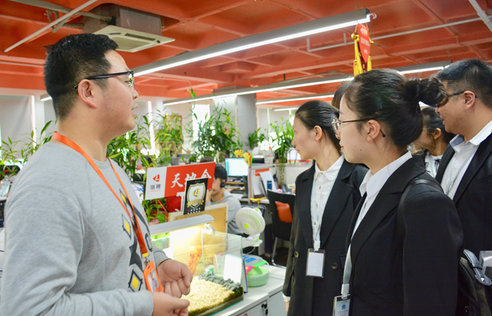 在工作人员的带领下,同学们参观了猎聘网公司的办公现场,和工作人员交流。通过实地参观企业,同学们对企业有了更深入的了解,对以后的实习有了更清晰的认识和更充分的准备。下一步,院企双方将会拓展合作深度和广度,为员工实习就业提供更多选择。
