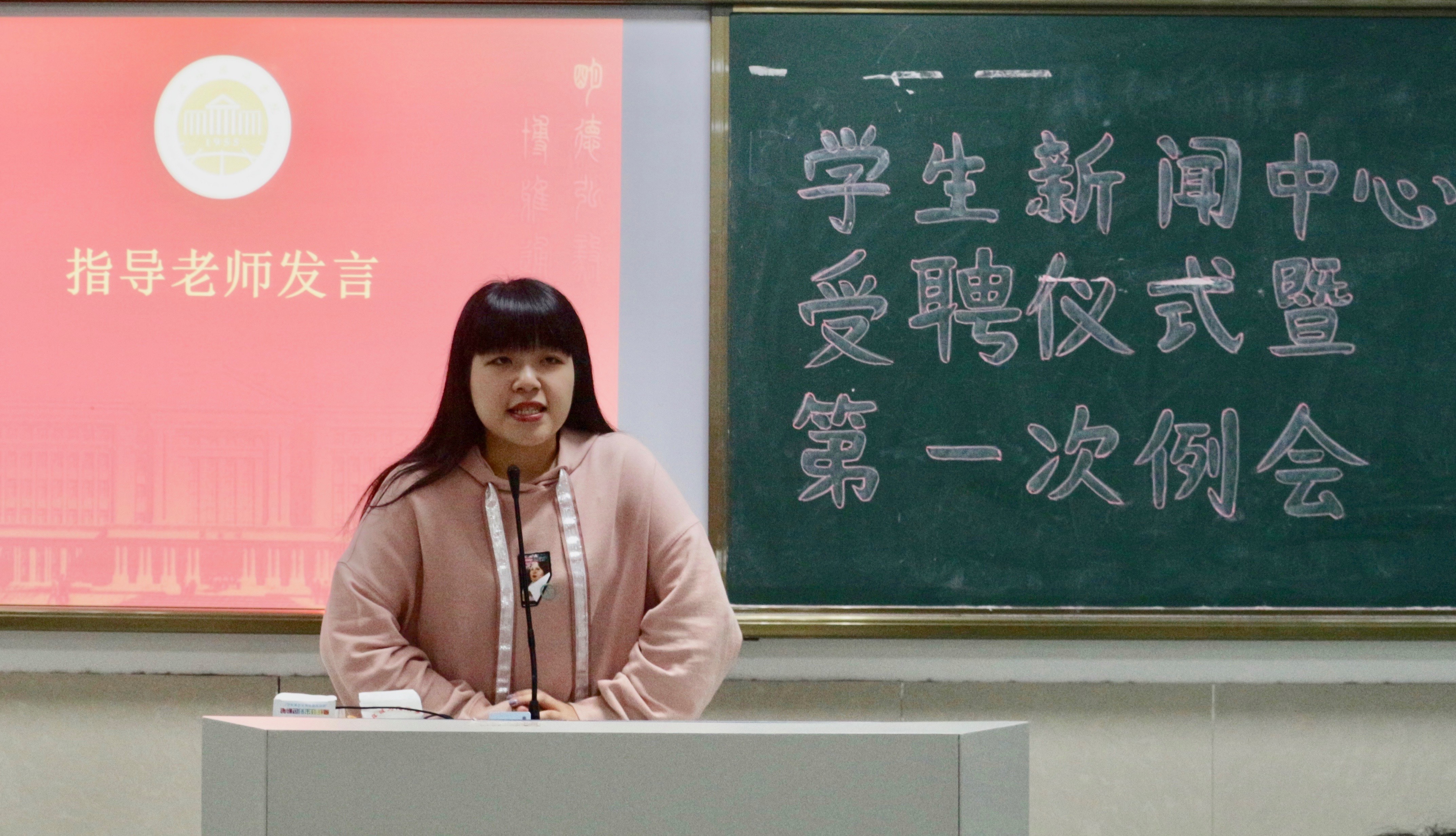 原主任陈雪珂与新干事们分享了在新闻中心两年的感悟收获,并从工作中总结出增强责任感、享受成就感、保持初心三点经验送给新干事们。