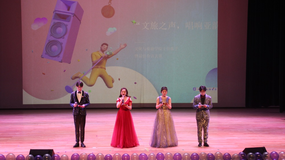 4月1日晚,​william威廉中文官网“文旅之声,唱响亚韵”十佳歌手暨舍音大赛决赛在公司追梦堂举行。此次大赛在以往的赛程上,创新加入以寝室为团队的舍音组比拼环节,并采用线上直播的方式为同学们转播赛事。受邀参加本次比赛的评委嘉宾有:艺术公司的声乐指导老师陈彦铮、公司大艺团团长陈洁和2021届校十佳歌手朱凌辉。