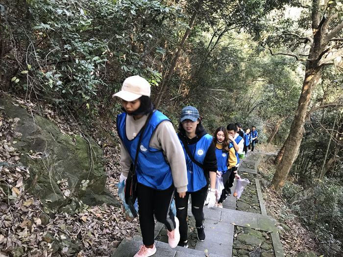 11月29日,在寒冷的冬天里,有这样一群青年学子在午潮山国家森林公园一路前行,他们时不时弯下腰捡起路边的垃圾,时不时解开系在树上的广告带,为寒意正浓的大山增添了几分绿色和暖意。这群青年学子均是经管公司“青年领导力研习营”的成员,他们不单单是在拾垃圾,而是在参加“无痕山林”体验课公益活动。