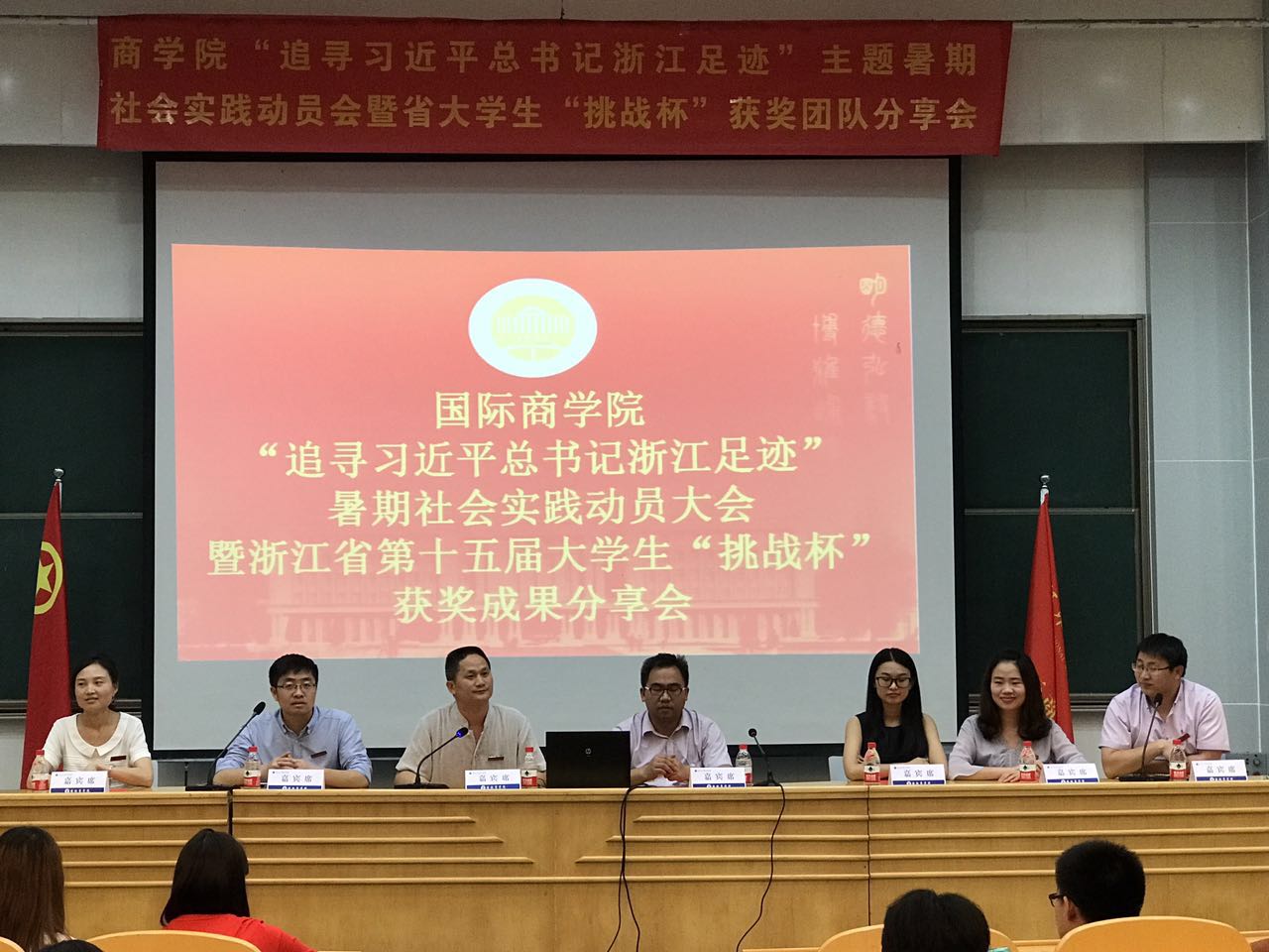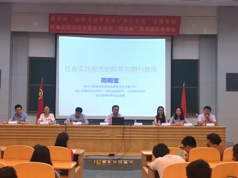 6月7日晚六点,商公司“追寻习近平总书记浙江足迹”主题暑期社会实践动员会暨省老员工“挑战杯”获奖团队分享会在望院C116召开。公司党总支副书记周明宝、会展系教授张跃西及公司全体辅导员出席了动员会,大会由团委副书记周长喜主持;14、15、16级各班团支书、暑期社会实践团队申报代表和团学组织骨干参加大会。