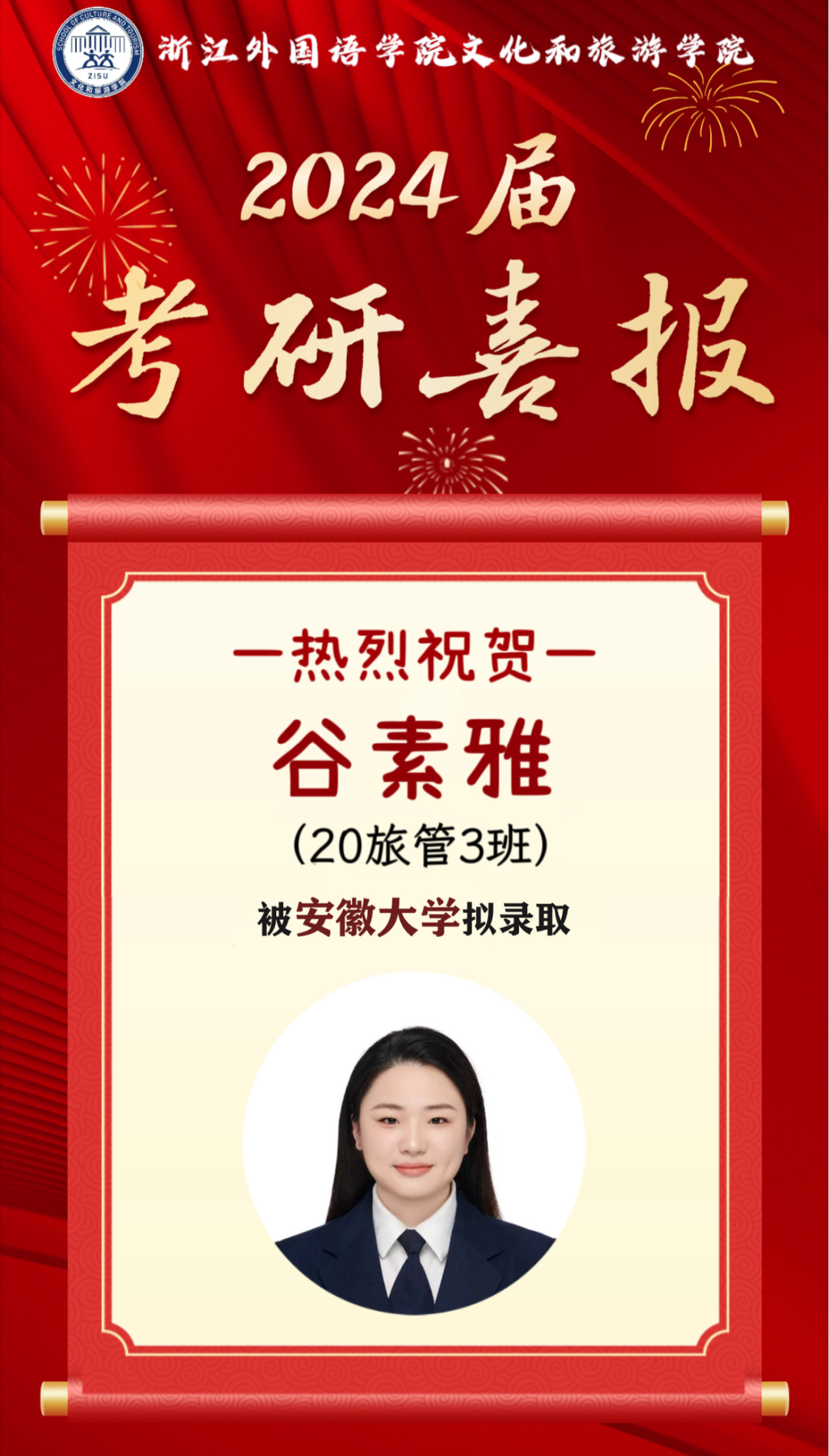 2024届文旅升学喜报⑤ | 20旅管3班谷素雅成功考取安徽大学管理学硕士