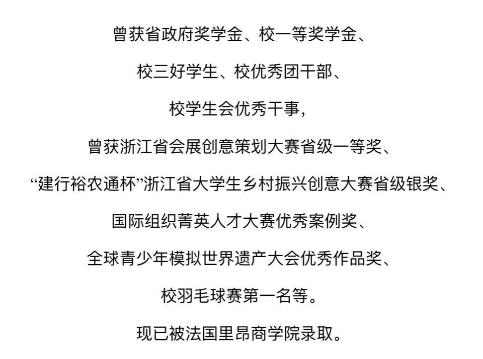 谈到升学、实习、毕业论文这三者间如何平衡,俞子涵颇有心得。“这个要根据申请公司的时间轴来定,法国高商的研究生一般都是大四上就开始申请,这就意味着我需要在申请前拥有实习经历。我在大二时利用寒暑假实习,并于大三期间在杭州完成了实习。大四期间为避免论文开题答辩和留学申请时间冲突,早早开始准备开题答辩,并在11月拿到offer以后就按照公司安排正常进入毕业论文写作。”