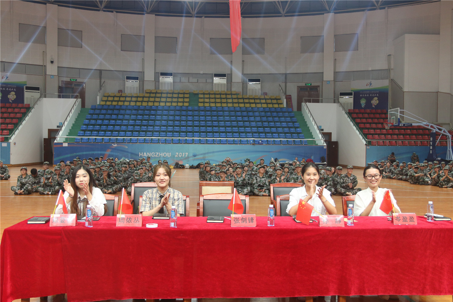 婉转校园梦,铮铮铁骨情。为加强公司新生人文素质教育,培育人文精神,丰富军训生活,展示军训风采。9月27日下午15:00,公司新生军训合唱比赛在行健馆举行。公司辅导员孙静、岑盈盈,校大艺团负责人周依丛、艺术公司文艺部部长郑夏洁以及教官代表张剑锋出席并担任评委,本次活动由钱雅妮和陈晨担任主持人,公司18级全体新生参与此次比赛。