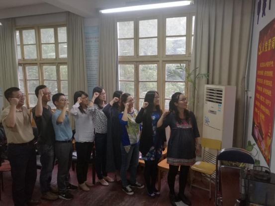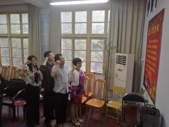 会后,各教工党支部书记带领支部全体党员在公司党员之家重温入党誓词。