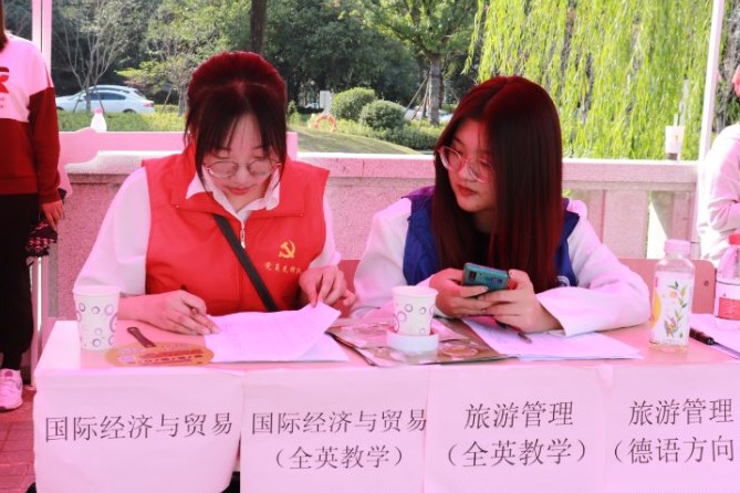 除了在校外接站的先锋,还有在校内帮助新生熟悉校园的后卫。邢冬怡同学就是他们其中的一员,她来自17旅管1班。也曾是院团委的负责人。比之去年,校内的志愿者工作也越发的完善。据她所述,今年在接站环节的服务比以往更加精准,有专人对接新生,确保每一位到站的新生都能坐上校车,顺利到校。而且迈入校园的他们,脸上都洋溢着喜悦与青春。这一切都是志愿者们与公司努力的倒影。当被问到今天是否遇到了难题,她答到,没有大问题,今年跟往年的流程稍有不同,报到注册手续更加智能化,需要志愿者们提前熟悉流程,以便更好的服务新生。
