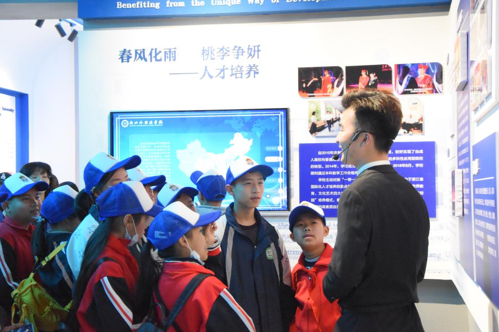 为大力推进东西部扶贫协作,推动教育组团式帮扶向纵深发展, 326日,贵州省剑河县第三中学、剑河县城关五小中小员工来到浙外进行研学活动,经旅公司志愿者党员带领其参观校园并在校史馆中开讲一堂“传承红色基因”的微党课。