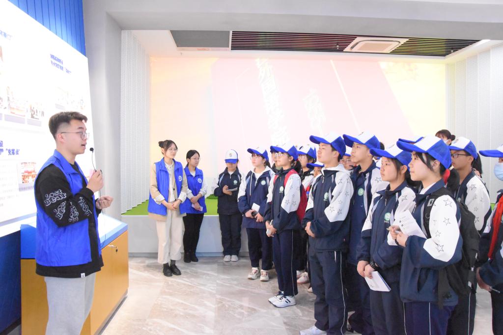 从静思湖到校训石再到校史馆,到访中小员工在公司志愿者带领和讲解下感受浙外的校园文化魅力和历史底蕴。当参观到校史馆“党建思政”模块的展区前时,公司员工党员许哲为大家开讲了一堂党课,他带领大家回顾了百年党史中的重要历史大事件,并通过讲述青年时期习近平在农村插队时求知若渴、与书为伴、一步步积累成长的故事号召大家学习青年习近平矢志不渝的理想信念、爱国为民的家国情怀、勤奋好学的进取精神和吃苦耐劳的优秀品格。当问及大家的梦想是什么,一位女孩坚定的说出此时此刻自己想要考上理想的大学,并会像青年习近平那般努力学习。
