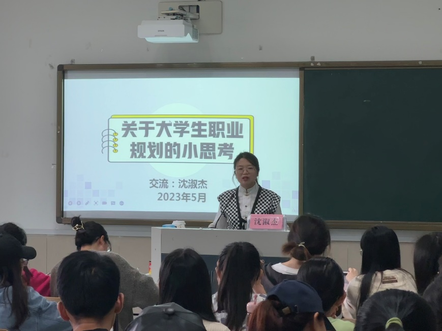 5月11日中午,​william威廉中文官网2023年第一期入党积极分子培训班第二讲在望D-406举行。本次培训邀请到来自桐庐旧县街道的综合办主任兼团工委书记沈淑杰,为同学们展开了一讲生动的职业规划课程。