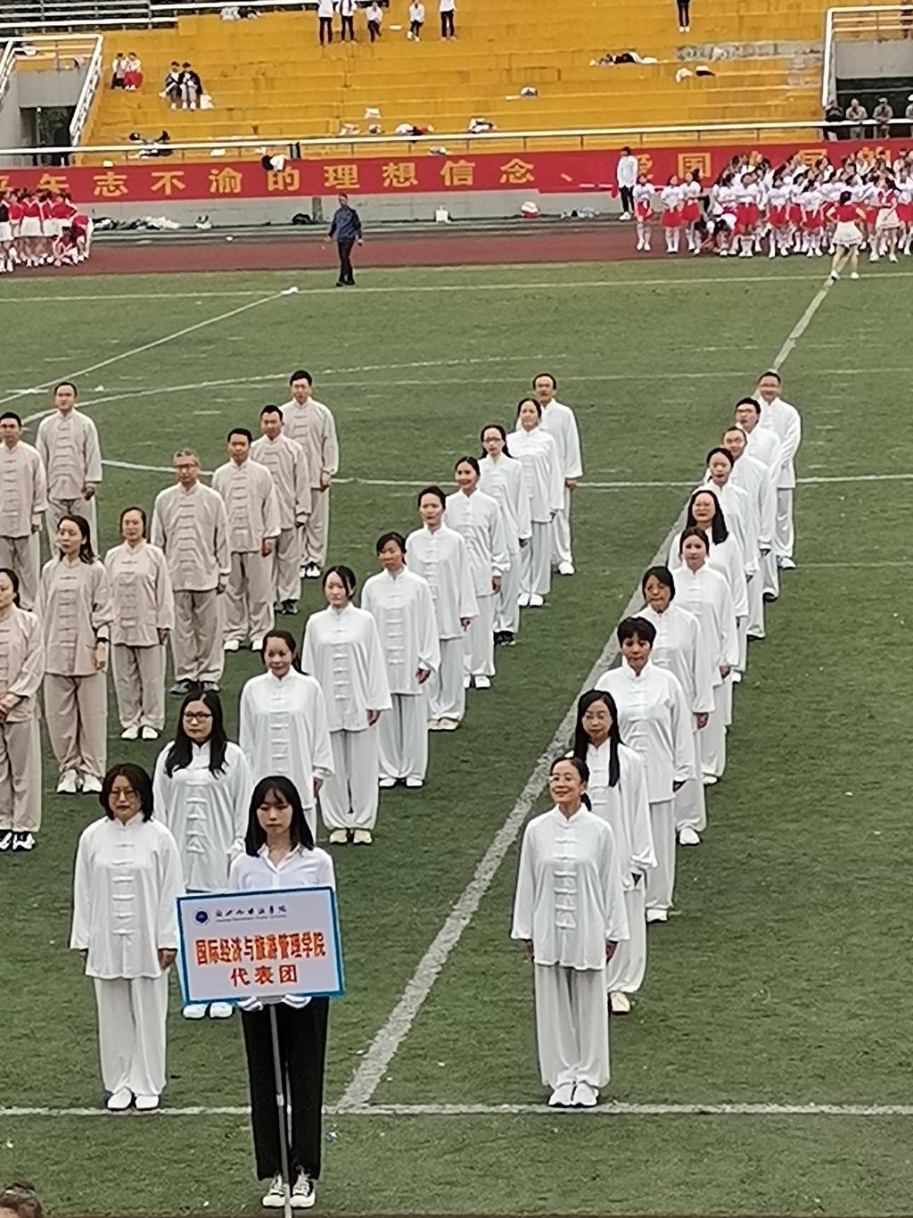 在开幕式当天公司教职工在八段锦汇报表演中以规范的动作、整齐的节奏赢得了现场师生的阵阵掌声。经过这次运动会,公司师生不仅在繁忙的工作中放松了自己,收获了喜悦,更锻炼的自己的身体。