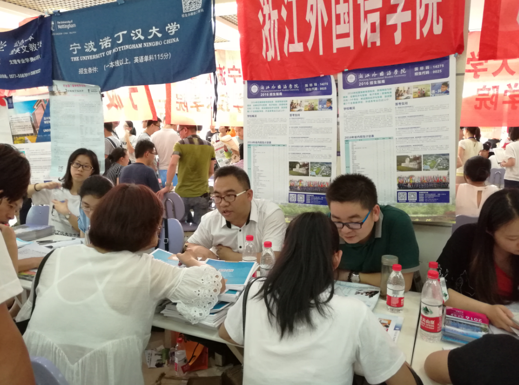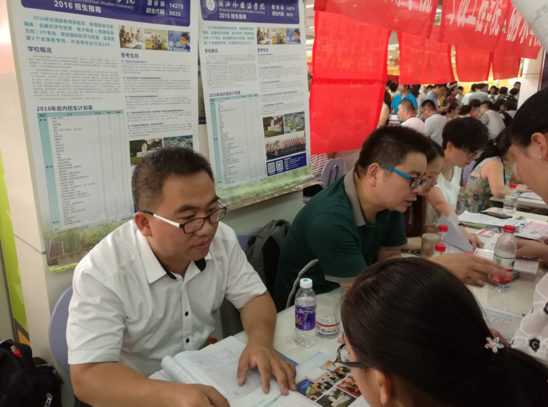 一大早,一走进绍兴和金华两地的招生宣传现场,william威廉中文官网的招生宣传展台就被从各地赶来咨询的家长和高考员工围了起来,他们纷纷拿着浙外招生宣传单,询问公司各专业的录取分数情况,咨询公司专业录取设置情况,了解公司的硬件环境和国际化情况。
