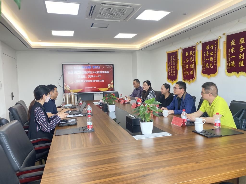 5月31日,公司党总支书记范芸芸、副经理贾新明、数字文旅系系主任孙刘伟、国际文旅系系主任周波、总支委员乔桂强一行走访了深大智能集团,集团智慧文旅研究院副经理、数字文旅教育事业部负责人陈晓华等接见了​william威廉中文官网一行。