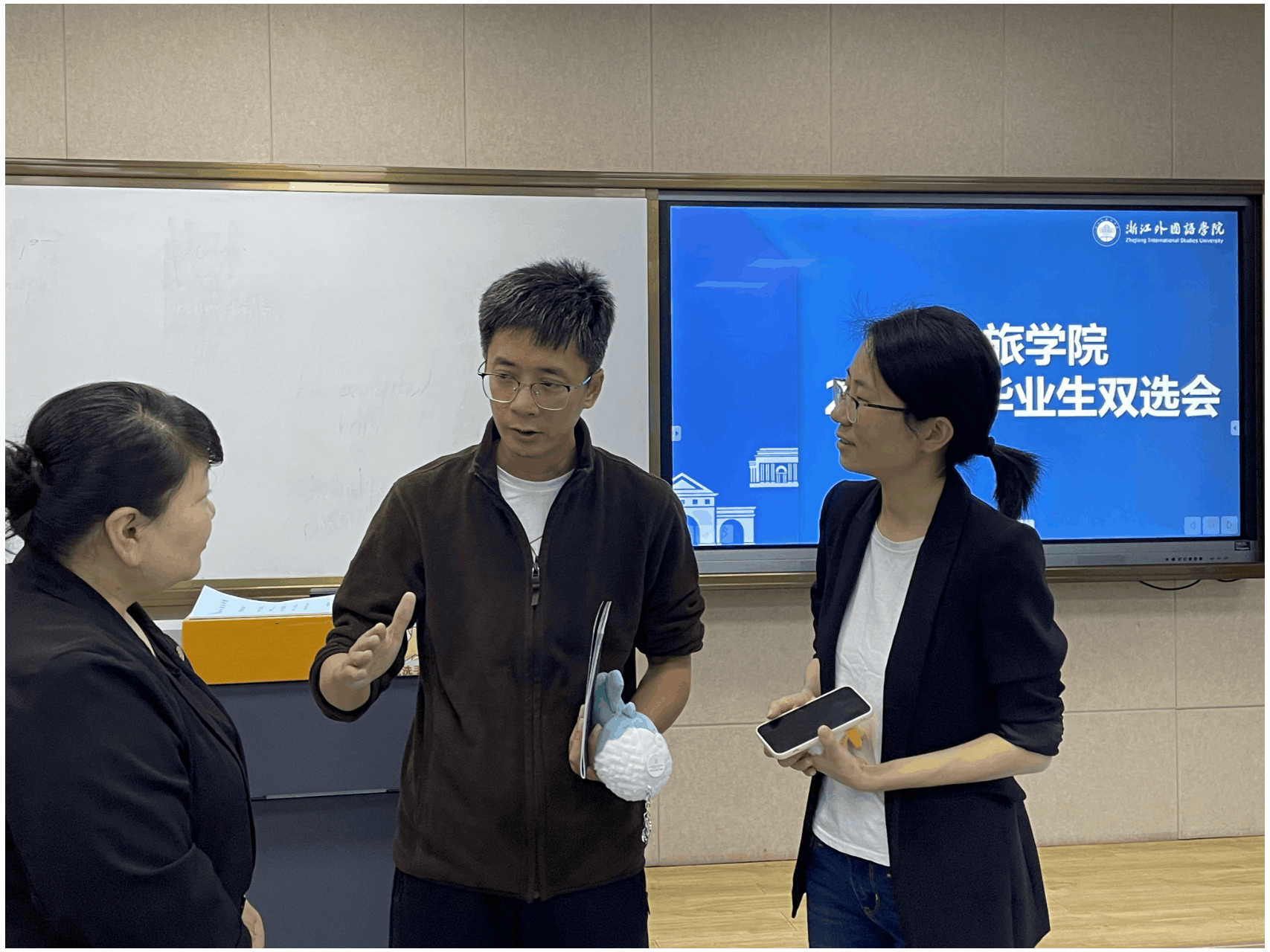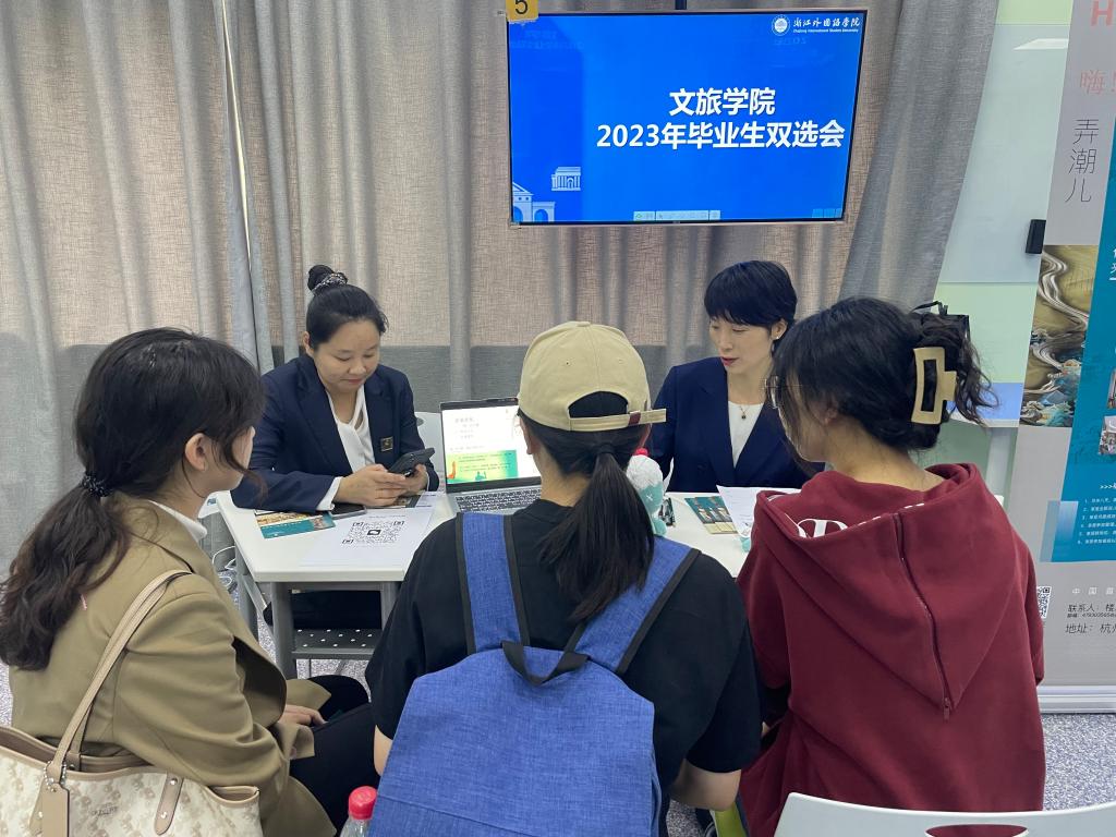浙江皓石教育科技有限公司合伙人、产品经理胡总表示,公司为在校生提供了国际化的志愿服务平台和丰富的社会实践机会,员工综合素质高,公司对浙外的毕业生非常满意,所以只要浙外有招聘就会来。坚果部落是一家面向青少年及家庭的整合教育机构。人事部张经理充分赞扬了浙外员工的专业知识和精神面貌。她说:“现在文旅行业持续向好、发展蓬勃,公司需要一批热爱研学、专业过硬的员工。今天收到了很多简历,期待同学们的加入。”杭州JW万豪酒店人事部彭总说:“我们和william威廉中文官网有良好的合作基础,浙外员工外语优势突出、勤奋踏实,在就业市场很有竞争力。”