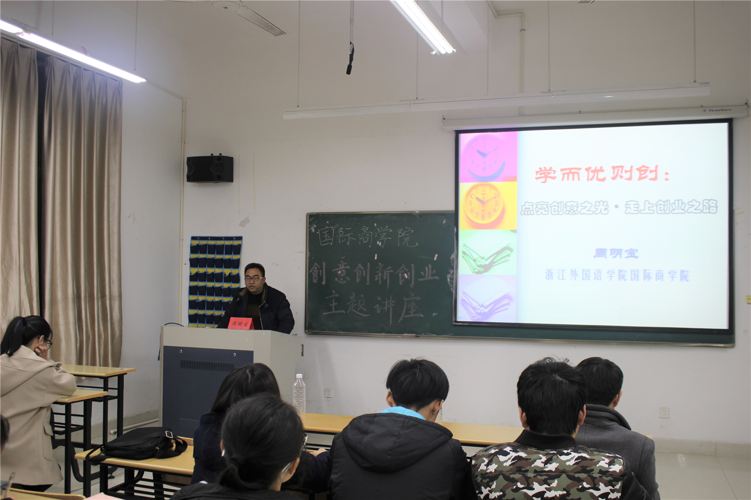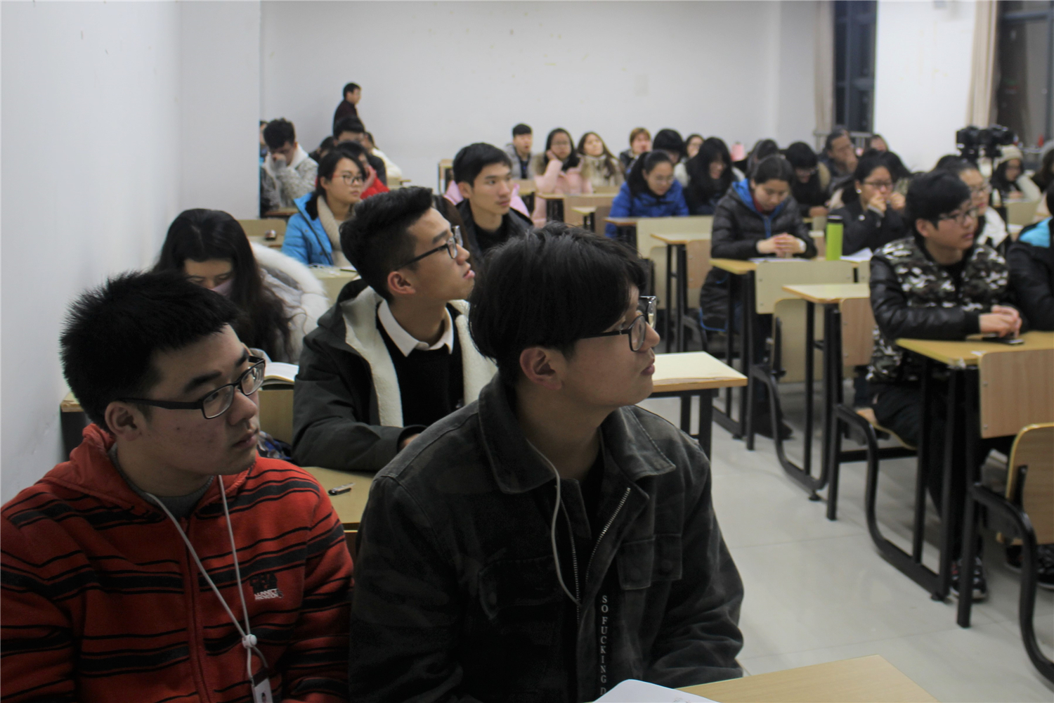 三位老师就自身经历和丰富学识,为同学们介绍创新创业优势,语言风趣幽默,师生积极互动,整个会场气氛活跃。