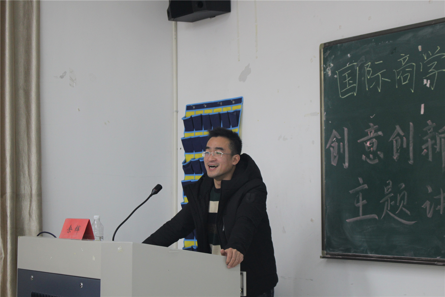 余辉老师做主题为“老员工创业政策与创业实践”的演讲。余辉从总体商务政策和政策红利两方面,着重介绍了老员工创业相关政策,解析其应如何运用,使同学们深入了解创业流程及注意事项。列举了多个优惠补贴项目,为同学们更好地创新创业提供方向。